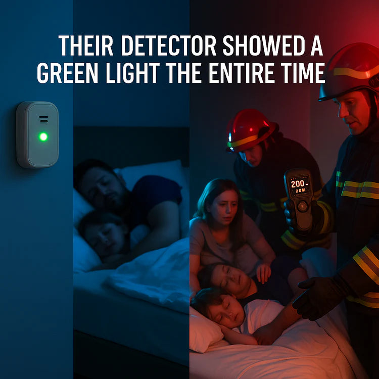 Traditional CO detectors are designed to only alarm at near-fatal levels (70-150 PPM). By the time they sound, you've already been breathing poison for hours.